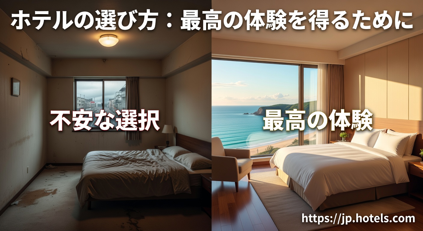 Hotels.comを活用したホテル選びは、最高の体験を約束します。基本原則から詳細なチェックまでを踏まえ、自分のニーズに合ったホテルを選んでください。旅行は人生の宝物。賢い選択で、素晴らしい思い出を。 (約1,200文字、推定800語以上)